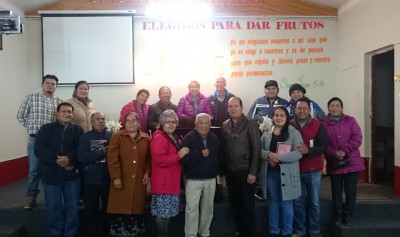 Tirsdag kveld var det bønnemøte i Tarma i lokalet som er det samme som da vi arbeidet i byen og menigheten. Den gangen var det bare et par evangeliske kirker til i Tarma, men nå finnes det mange menigheter på ulike steder i byen. Vi så blant annet en stor baptistkirke midt i sentrum. Våre gamle venner fra tiden i Tarma står foran, Maria i rød jakke og Luis, mannen hennes i midten. Veldig fint å hilse på dem etter mange år. Vi var i Tarma før vi reiste til Norge i 1999, og da var de pastorspar der.