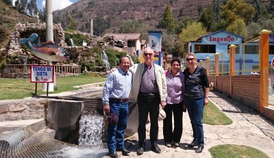 Her er vi sammen med nåværende pastorspar på et oppdrett senter for ørret. Det var også en kafe med bord ute der de serverte ørret på mange måter. Vi innbød dem på middag og koste oss med et godt måltid og samtale om arbeidet både før og nå i Tarma.