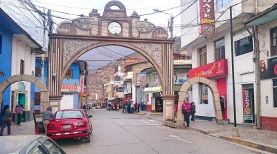 Det er to slike portaler i hovedgaten ved innkjørselen til Tarma. De første par månedene vi bodde i Tarma, bodde vi oss Lindgrens fordi det var meningen vi skulle bo der når de reiste hjem. Men så ville ikke eieren leie ut lenger, og vi måtte finne noe annet. Leiligheten var i 2.etg. rett hitenfor det blå huset til venstre.