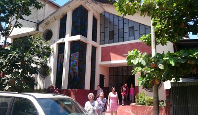 Det øverste bildet er utsikt over Villa Perene. Det nederste viser lokalet Filadelfia i byen. Her står John sammen med Anne-Marthe utsendt fra menigheten i Hamar. Hun har arbeidet i menigheten i en tre års tid nå. Men reiser hjem til Norge til jul.